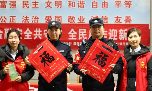 活动当天,人民银行反诈宣传员、民警、车站职工与九江银行工作人员早早集结,在火车站进站口核心区域搭建联合宣传服务台,醒目横幅高悬、反诈展板整齐排列,图文并茂的金融安全知识折页与红彤彤的新年春联相映成趣。宣传人员一边向过往旅客送上新春祝福春联,一边结合近期高发的购票诈骗、冒充客服退款、春运补贴虚假信息等典型案例,用通俗语言拆解诈骗套路,详解防范要点,普及金融知识,让反诈随新春暖意一同抵达旅客心间,赢得广泛好评。