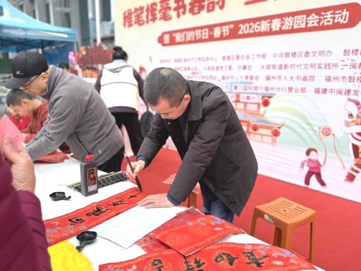在福州,厦门国际银行福州分行承办“稚笔挥毫书春韵 墨香联语贺新岁”新春游园会,邀请书法志愿者挥毫泼墨送祝福,而在游戏互动区,银行工作人员则围绕高息理财、陌生转账短信等常见风险,以趣味问答形式与居民互动,在欢声笑语中筑牢风险认知防线。