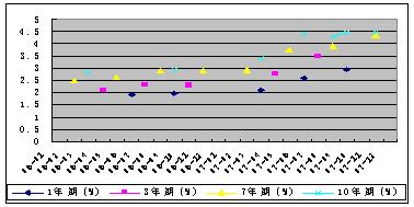 11月,财政部共发行国债3期,总计发行面值1030亿元。其中:7年期记账式国债1期,发行面值324.7亿元;特别国债2期,总计发行面值705.3亿元(其中,十年期品种1期,发行面值349.7亿元;十五年期品种1期,发行面值355.6亿元)。记账式国债(含特别国债)发行量与去年同期相比增加了384.1亿元(见图7)。发行利率继续随市场利率上升,其中:七年期基准国债的发行利率为4.35%,较上期(今年8月)上升了45个基点;十年期基准国债的发行利率为4.49%,较上期(今年9月)上升了14个基点(见图8),中期品种利率上升的幅度更为明显。
