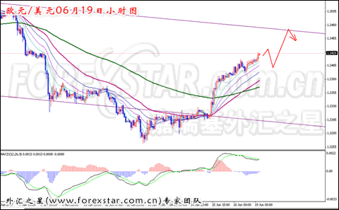 欧元/美元短线汇价自亚洲开盘后短线汇价一路保持震荡上扬走势节奏,期间没有出现较大幅度的回调运行节奏。日线图形K线继续收小阳线,5日均线已经拐头向上,MACD指标在零轴下方形成金叉,从走势力度来看,欧元在1.3256附近获得有效支撑后,其反弹上行力度较强,前期下行通道上沿为此轮反弹的强阻力位置,若有效突破欧元/美元中线走势继续看涨。