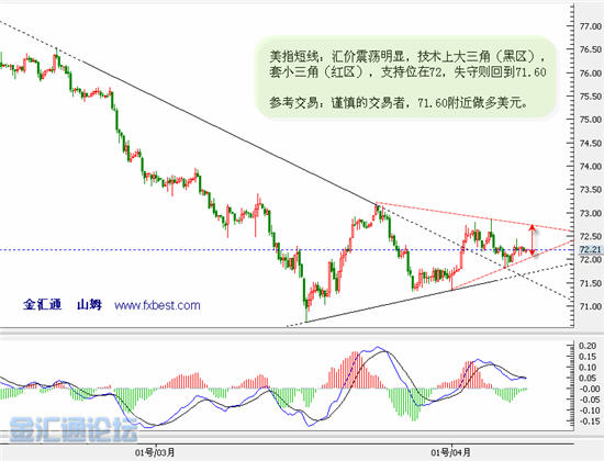 关于本周的走势,个人认为以震荡为主,欧元只有上破15750或者下破15650才可以有一个明朗的短线方向,这一百点的区间未破,还是上述二种力量的较量。