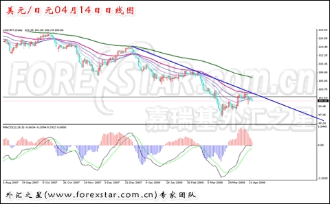 周五,美元大幅下挫,主要是因为令人失望的消费者信心数据与公司业绩使得市场风险偏好受挫。由于通用电气出人意料地宣布第一财政季度收益下滑6%,并下调2008财年预期,道琼斯指数下跌了200多点,不仅打击了投资者的冒险意愿,美元汇率也遭重挫。作为全球第三大公司,通用电气的实际盈利及业绩预期均令人失望,这可能促使风险偏好降温,进一步提振日元与瑞郎等低收益率货币,同时导致高收益率货币承压走低;预计美元也将全线下挫。密歇根大学4月中旬消费者信心指数降至63.2这一26年低点,3月份为69.5;主要受食品和燃料价格高企的拖累。经济学家此前预期为68。但周五美元一直运行于相当狭窄的区间内,因为市场在等待七大工业国财政部长与央行行长会议的最终公报。而美联储的系列减息举措令美元收益率下降,也导致美元持续走低。