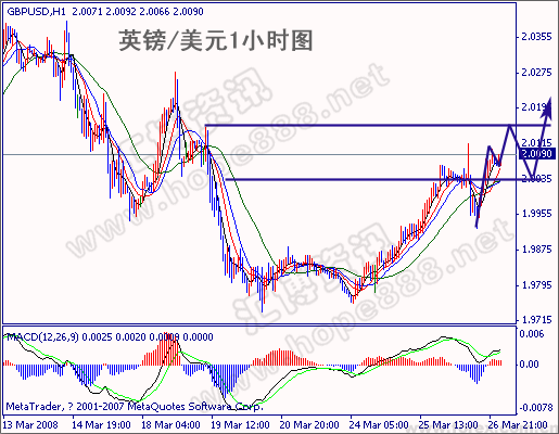 英镑分析:英镑昨日振荡小幅走高,预计今日继续上行,英镑今日下方支撑位于:2.0030-40,1.9970-80,1.9920-30,今日上方压力位于:2.0130-40,2.0195-2.0205,2.0245-55,今日下方关键支撑位于2.0030-40,今日上方关键压力位于:2.0130-40。今日操作:逢低买入,多单参考进场区间:2.0030-40。