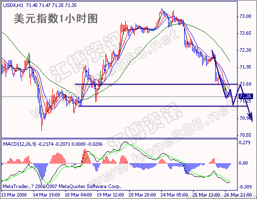 昨日美元大幅走低,非美上扬,欧元表现尤为强劲,基本面原因:一是欧元区经济数据强劲,其中德国3月份Ifo商业景气指数由2月份的104.1升至104.8,二是欧央行长特里谢发表了措辞强硬的讲话,特里谢表示到目前为止,金融市场动荡尚未对欧元区的融资环境或实体经济产生显著影响,欧央行坚持维持物价稳定是其主要任务,使得市场对欧洲央行将很快降息的预期大大降低,三是美国经济数据继续疲软,其中美国2月份预售屋销量降至13年来的最低水平,而2月份耐用品需求也意外下降,2月份耐用品订单下降1.7%,至2106.5亿美元,1月份耐用品订单经修正后为下降4.7%。技术方面非美虽然纷纷上扬,但幅度不一。
