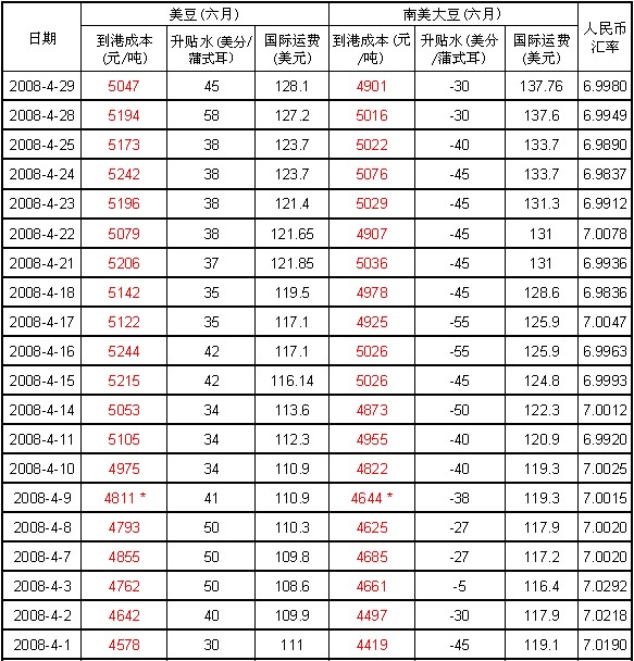 (以下数据按收盘价估算美湾及巴西大豆到港价格,数据仅供参考)