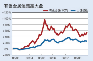 回顾去年下半年以来的这轮行情,金属股无疑是最大赢家。上证指数自998点低位启动,升至目前的1613点,涨幅为62%,期间最大涨幅为76%;而同期在国际金属期货价格屡创新高刺激下,申万有色金属指数由584点飙升至1460点,涨幅为1.5倍,期间最大涨幅则高达惊人的218%。沪深两市金属类股票中,也跑出了G鲁黄金、G宝钛、G江铜、G株冶等许多翻番的“黑骏马”。