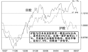 内外价差严重失衡迟早要得到修正,但如何修正很关键,是日胶补跌抑或沪胶补涨,这既牵扯到方向问题,又关系到双方价格行为问题,对交易影响很大。如果是日胶补跌意味着全球胶市大方向朝下已成定局,日胶大幅下跌会带动沪胶继续下跌,只是沪胶下跌将带有一定的抗跌性;如果是沪胶补涨,此种可能只有在日胶成功站稳300日元之上时,才可能出现,如果日胶不突破300日元关口的压力,沪胶上行缺少推动力的同时仍要承受巨大的库存压力。因此,到底是日胶补跌,还是沪胶补涨,目前已日趋明朗,日胶指数逐步回落,离300日元是越来越远了,这意味着日胶补跌,进一步收窄二者价差的概率居大。