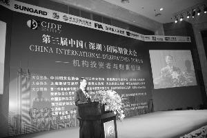 中国国际期货大会昨日在深圳举行,图为中国证监会主席助理姜洋在会上发表演讲本版图片均由本报记者杨勣摄昨日上午11点,六大交易所总经理齐聚国际期货大会,纵论股指期货发展。会场传出的信息显示,确保股指期货顺利推出已经成为国内六大交易所的共同使命,风险控制是决定股指期货顺利推出的重要因素。