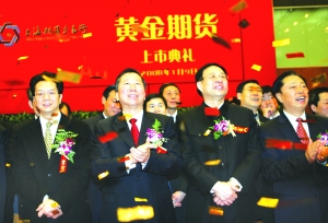 经中国证监会批准,黄金期货合约昨天在上海期货交易所上市交易。中国证监会主席尚福林、上海市常务副市长冯国勤、中国黄金协会会长孙兆学等出席上市仪式并致辞。尚福林在仪式上表示,2007年,我国期货市场的法规制度体系得到了全面的修改完善,关系期货市场长远发展的多项基础制度得以建立健全,期货市场具备了进一步发展的内在基础和外部环境。黄金期货推出后,期货市场品种体系进一步健全,除石油外,国外成熟市场主要的大宗商品期货品种基本上都在我国上市交易。