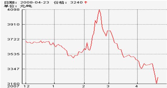 于是,白糖价格从3月4日开始走上价格回归之路。白糖价格回到4000元左右后,相信3月2日中糖协减产预报的交易者开始大量买入。不过这些多头遭到昆明2008年食糖形势分析会议上广西糖协的另一消息的致命打击:07/08榨季广西食糖产量估计在900万吨左右。——否定180万吨的减产,反而在原来预期的850万吨的基础上还增产了50万吨!