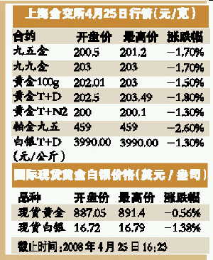 黄金期货跌破200元/克关口
