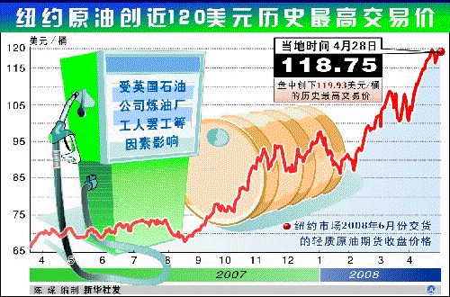 图表:4月28日,纽约原油创近120美元历史最高交易价