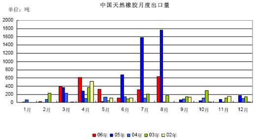 我国天然橡胶产地海南、云南的天然橡胶总产量约占全国总产量的60%和35%,而这些地区也最易受台风侵袭。2006年我国天胶产区也遭遇了不利天气的影响,部分地区还受到台风的威胁,但整体对天胶产量的影响不大。预计2006/07年度如果气候条件良好,我国胶产量还可能会有所增加。