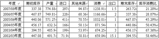 2002/2003年度以来国内棉花产销存平衡表单位:万吨