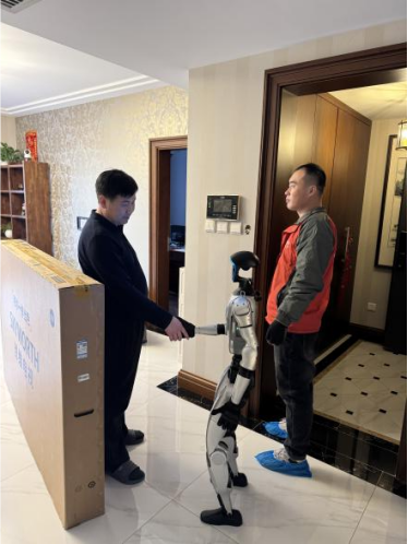 刘先生介绍,自己近期正计划更换家中的旧电视,得知2026年以旧换新补贴政策开启后,特意在京东上进行了仔细挑选。“这台原价六千多元的电视,用国补直接便宜了一千多元,性价比超高,而且从下单到收货全程顺畅,机器人送货的惊喜体验感拉满了!”签收现场,刘先生特意与给他“送货”的人形机器人握手合影,为这份新年的惊喜礼物点赞。
