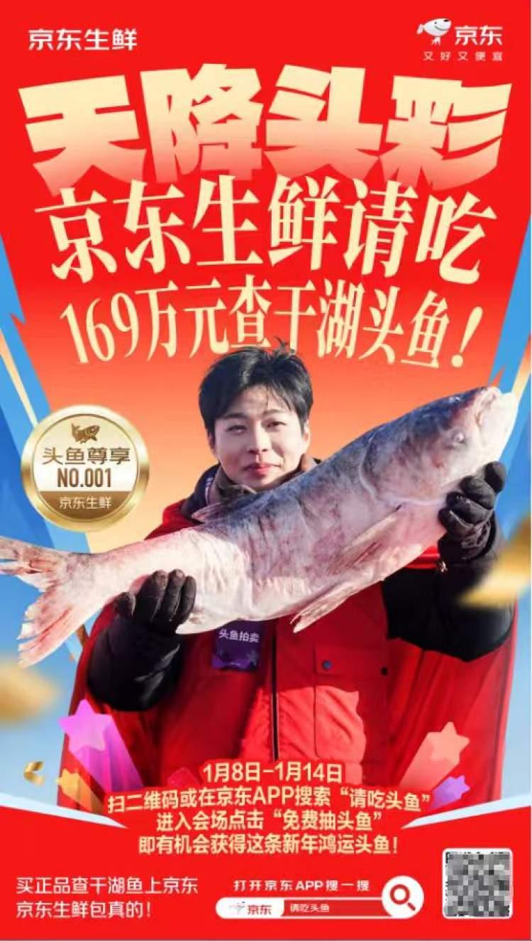 京东通过线上抽奖方式,将拍下的头鱼免费送给京东用户