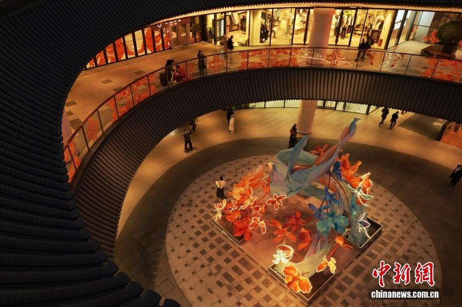2月9日,北京中海大吉巷的“古院藏春”景观吸引市民。春节临近,该商场打造多种春节景观,为市民寻年味提供去处。中新社记者 张祥毅 摄