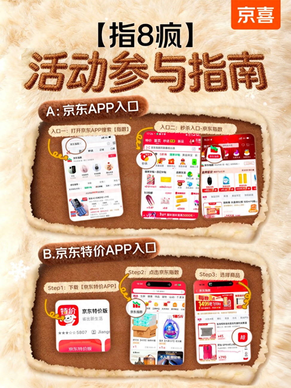 春节将至,京东指数为用户带来更实惠的年货好礼,打开京东APP搜索“指数”进入“京东指数”页面;或打开京东特价版APP,首页即有“京东指数”频道。