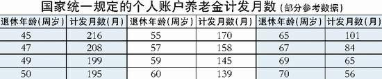 例如,退休年龄56岁的计发月数是164,57岁的计发月数是158,70岁的计发月数是56。也就是说,退休年龄越大,计发月数就越小。