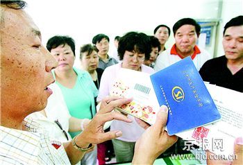日前,展览路社保所工作人员在为参保人员讲解医疗保险条形码的用途及注意事项。本市首批522万枚医疗保险条形码已制作完成,并将陆续发放到18个区县医疗参保人员手中。从7月1日起,参保人员到基本医疗保险定点医疗机构就诊时,它将与《北京市医疗保险手册》一起使用。 戴冰/摄