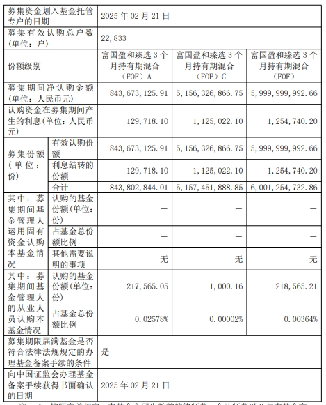 富国盈和臻选3个月持有期混合成立 规模60亿元