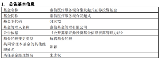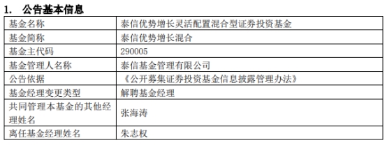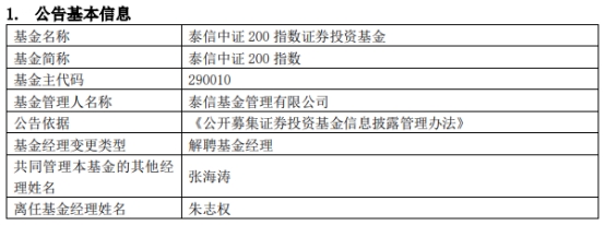 泰信基金朱志权离任3只基金