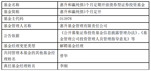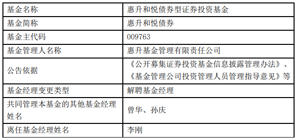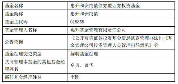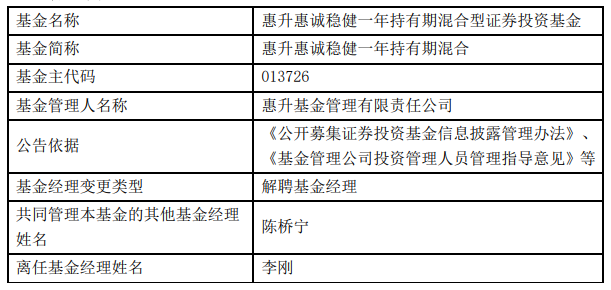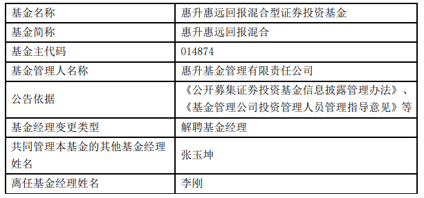 惠升基金李刚离任5只基金
