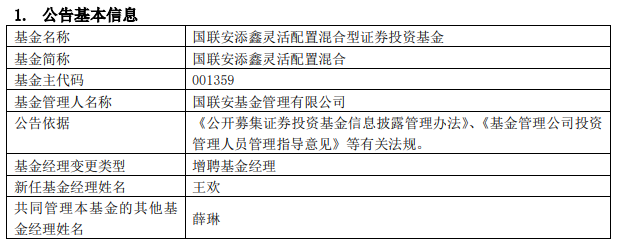 中国经济网北京4月3日讯 今日,国联安基金管理有限公司公告称,国联安添鑫灵活配置混合(A类001359;C类001654)增聘基金经理王欢。