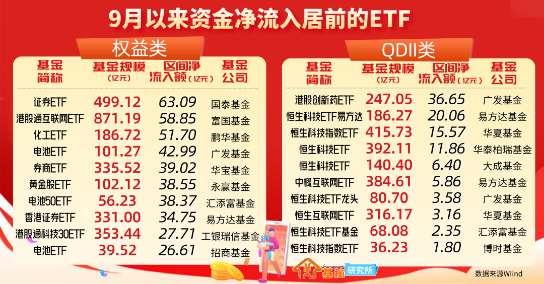 9月以来,恒生指数和恒生科技指数涨幅均超5%。而自8月29日以来,南向资金已经连续11个交易日净流入港股,ETF成为资金布局港股的主要工具。