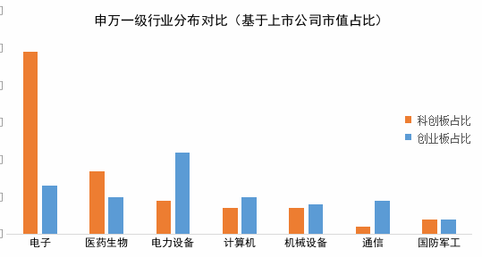 从行业分布上看,科创板更加集中,按照公司数量计算,科创板电子、医药生物行业公司占比较高,分别为25%和19%;按照市值计算,电子行业占比接近一半,在板块中“一家独大”,硬科技属性突出。创业板的行业分布则更加分散,均衡覆盖电力设备、电子、计算机等领域。