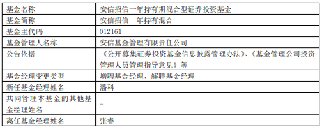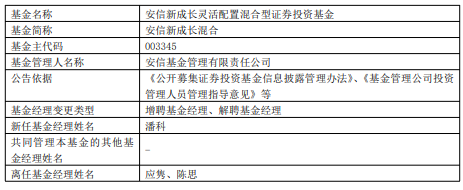 安信招信一年持有混合安信新成长混合增聘潘科