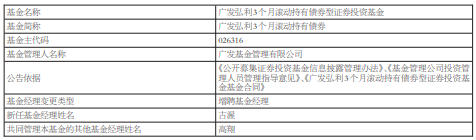 广发弘利3个月滚动持有债券增聘古渥
