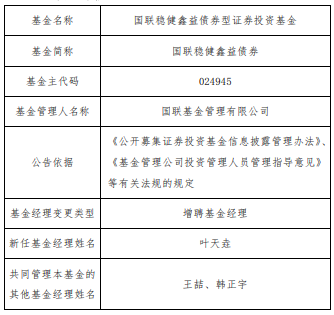 中国经济网北京128日讯 今日,国联基金公告,国联稳健鑫益债券增聘叶天垚。