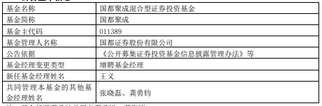 中国经济网北京130日讯 今日,国都证券公告,国都聚成混合增聘王义。