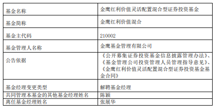 中国经济网北京2月2日讯 近日,金鹰基金公告,张展华离任金鹰智慧生活混合、金鹰中小盘精选混合、金鹰红利价值混合。