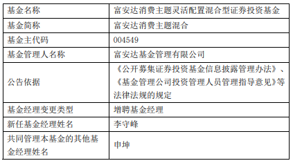 中国经济网北京2月2日讯 近日,富安达基金公告,富安达优势成长混合、富安达消费主题混合增聘李守峰。
