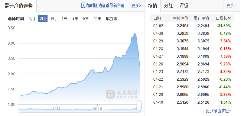 受此“纠偏”影响,据天天基金网数据,2月2日,国投白银LOF净值暴跌31.5%,刷新公募基金的单日跌幅纪录。