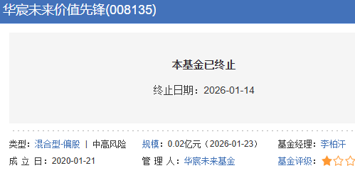 基于市场环境变化及基金运作情况,为更好地保护基金份额持有人利益,根据《中华人民共和国证券投资基金法》《公开募集证券投资基金运作管理办法》《公开募集证券投资基金信息披露管理办法》和基金合同的有关规定,该基金的基金管理人经与基金托管人中泰证券股份有限公司协商一致,提议终止《华宸未来价值先锋混合型发起式证券投资基金基金合同》,并召开基金份额持有人大会审议上述事项。根据该基金管理人2026年1月13日公告的《华宸未来价值先锋混合型发起式证券投资基金基金份额持有人大会表决结果暨决议生效公告》(以下简称“《决议生效公告》”),本次基金份额持有人大会于2026年1月12日表决通过了《关于华宸未来价值先锋混合型发起式证券投资基金终止基金合同相关事项的议案》,本次基金份额持有人大会决议自该日起生效。根据《决议生效公告》,该基金最后运作日为2026年1月13日,自2026年1月14日起进入清算期。