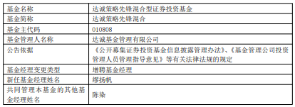 中国经济网北京2月11日讯 今日,达诚基金公告,达诚策略先锋混合增聘缪扬帆。