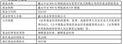 中国经济网北京2月11日讯 今日,鑫元基金公告,鑫元科创AI指数发起式、鑫元中证800红利低波动ETF联接、鑫元中证800自由现金流指数、鑫元中证800红利低波动ETF增聘莫志刚。