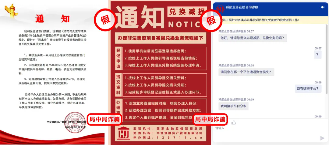 中国经济网北京2月5日讯 淡水泉(北京)投资管理有限公司(下称“淡水泉投资”)4日发布提示称,公司关注到有不法分子冒用淡水泉投资、淡水泉投资员工的名义,在互联网平台或线下开展非法荐股、非法集资、项目投资等违法证券活动,涉嫌骗取投资者钱财,甚至有不法分子冒充监管部门,谎称“受金融监督管理部门委托,开展兑换减损处置工作”,虚构所谓的“非法集资减损平台”,持续行骗。