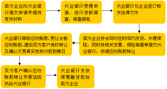 卖方企业在销售商品后,持买方企业交付的商业汇票(银行承兑汇票或商业承兑汇票)到兴业银行办理贴现,票据贴现利息由买方企业、买卖双方或第三方按照贴现付息协议约定的比例承担。