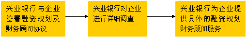 工业园区金融服务专案是指兴业银行根据工业园区及区内中小企业的资金需求、服务需求及经营特点,提供多样化、差异化、专业化的金融服务产品,促使企业达到快速融通资金、提高资金使用效率、安全管理资金的目的,为企业的成长提供全方位服务和支撑。