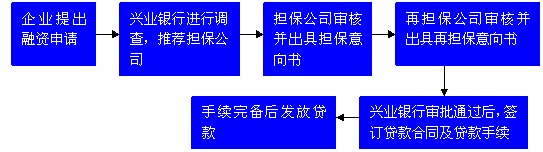 ☆再担保机构合作贷款:指兴业银行与再担保机构合作,对担保机构提供有效担保、并由再担保机构进行再担保的贷款项目,纳入优先受理范围,实现高效快速发放贷款的小企业信贷业务产品。