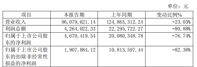 中国经济网北京2月23日讯 西磁科技(920061.BJ)近日披露2025年年度业绩快报公告。报告期内,公司实现营业收入为96,079,621.14元,较去年同期下降23.05%;归属于上市公司股东的净利润为4,670,419.54元,较去年同期下降76.74%;归属于上市公司股东的扣除非经常性损益的净利润为1,907,884.12元,较去年同期下降82.36%。