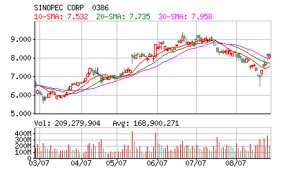 中石化将在今天揭晓它的中期业绩,由于受惠于炼油业务由亏转盈,券商们纷纷预期中石化上半年盈利会增长强劲。市场预期中石化上半年纯利不会低于340亿元人民币,同比上升六至七成。