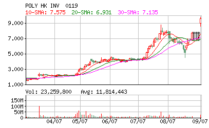 今年3月,保利香港向中信泰富(0267.HK)主席荣智健私人以1.7港元价格配发2.69亿股新股,相当于扩大后股本的16.65%,募集资金4.573亿港元,主要用于上海浦东新区物业发展项目上,而中信泰富同样有意拓展包括上海在内的地产及基建市场。