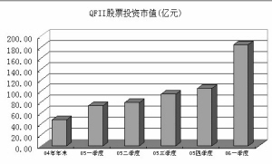 面对自去年底以来的本轮火爆行情,众多机构大举入市。QFII2006年一季度的持股市值比去年底增加70%多,从而一举超越券商坐上了市场份额的第二把交椅,并且在本轮行情中获利丰厚。