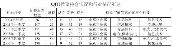 从2005年第一季度季报、半年报、第三季度季报、年报和2006年第一季度季报显示的QFII投资状况看,QFII增持和新进的股票数量一直占有较大比例,保持十分积极的投资态度。特别是今年第一季度新进的股票数量达到80只,接近被减持股票的10倍,所持股票总数为2004年年底时的3倍多。
