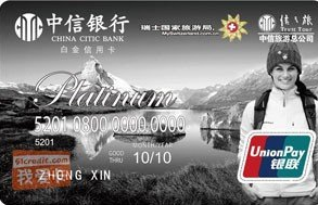 (一)畅游瑞士,无尽享受:订房折扣;机票折扣;租车折扣;景点优惠;团体出行优惠;(二)双重保障,安心出行:航班延误保险;(三)中信特色,创新服务:最长 50 天免息还款期;免担保人,免保证金;一卡双币,全球通行;可选“密码 + 签名”消费功能;24 小时免费手机短信通知服务;24 小时客户服务热线;白金首发,独享尊荣;“ 36+1 ”高尔夫畅打;白金航空礼遇;白金洁牙服务;白金医疗服务;汽车道路救援服务;高额航空意外伤害保险;白金品鉴会;商务订车服务;白金理财顾问服务;白金精选名店;白金专人服务; |